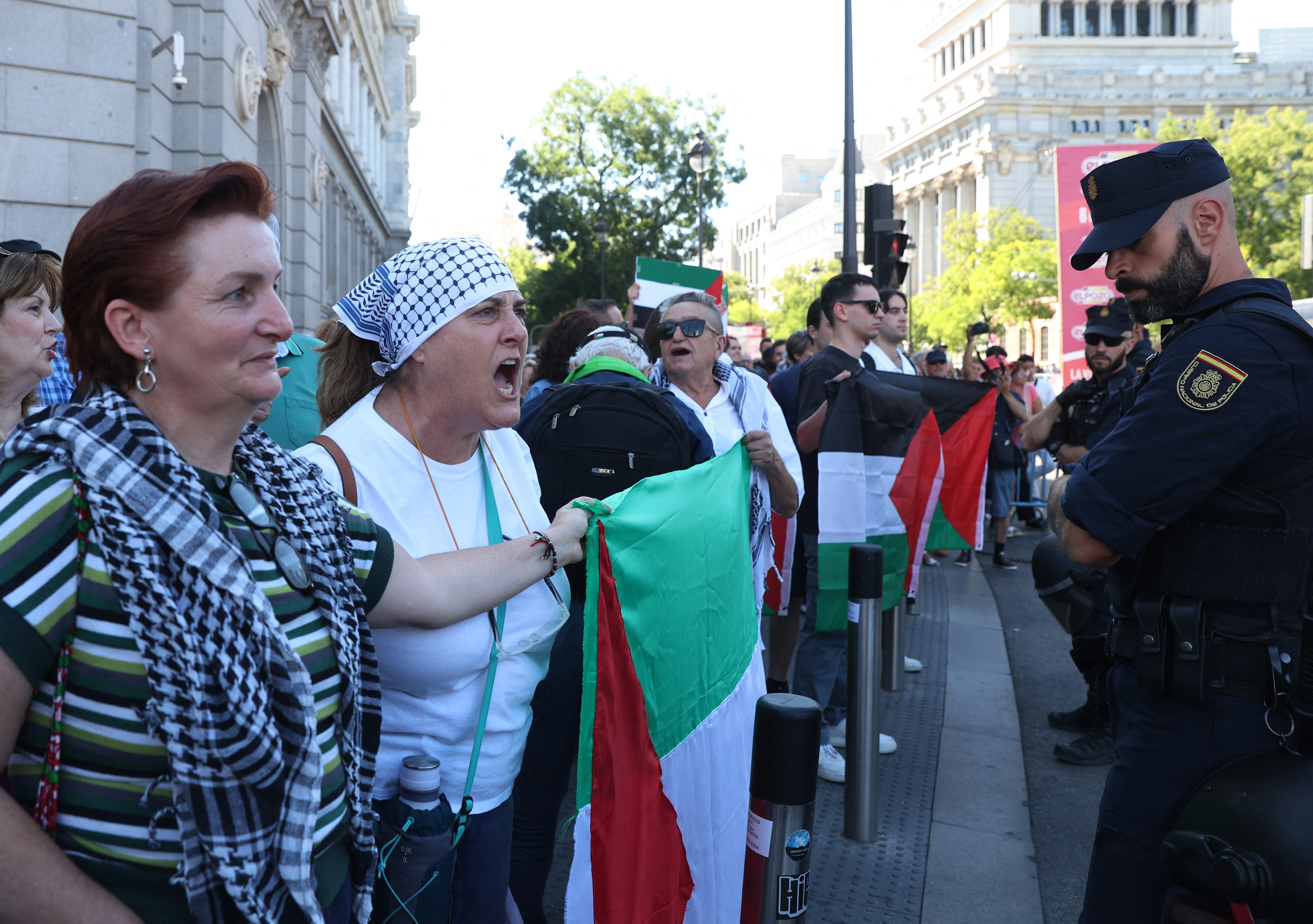 وتمكنت الشرطة من إبعاد حشد من مئات الأشخاص يحملون لافتات ويلوحون بالعلم الفلسطيني لعدة ساعات بينما كان المتسابقون يشقون طريقهم عبر المدن والقرى باتجاه مدريد.